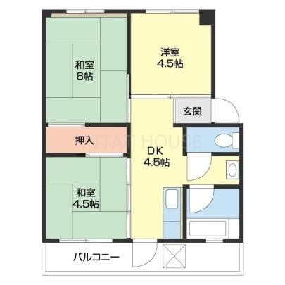 築年月 1975年2月  間取り 3DK( 和室4.5畳/和室6畳/洋室4.5畳/DK4.5畳 ) 専有面積 44.5m2
