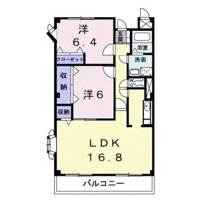 2LDK( 洋室6.4畳/洋室6畳/LDK16.8畳 ) |