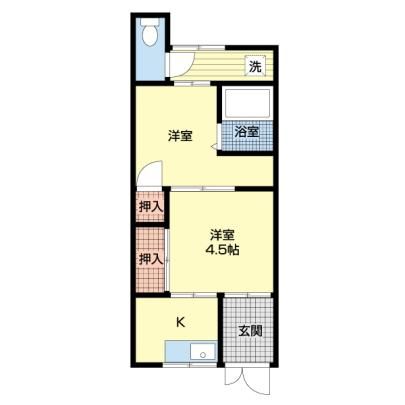 2K( 洋室4.5畳/洋室4畳/K2.5畳 ) |