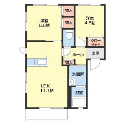 築年月 2005年3月  間取り 2LDK( LDK11.1畳/洋室5.5畳/洋室4.8畳 ) 専有面積 50m2