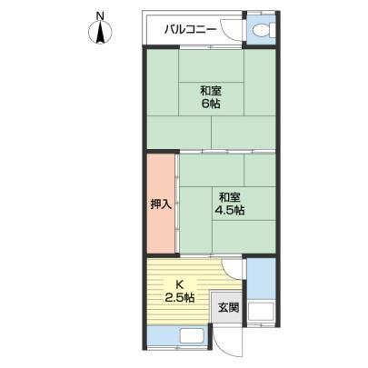 築年月 1970年5月  間取り 2K( K2.5畳/和室4.5畳/和室6畳 ) 専有面積 31m2