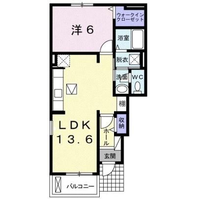 1LDK( 洋室6畳/LDK13.6畳 ) |