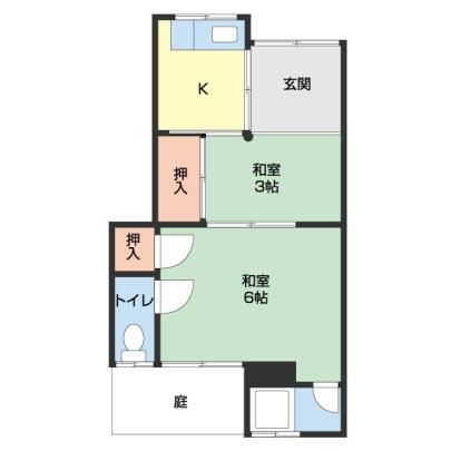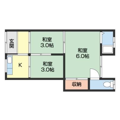 築年月 1974年1月  間取り 2K( 和室3畳/K0畳/和室6畳 ) 専有面積 23.47m2