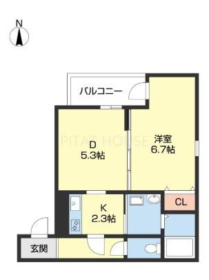 築年月 2016年9月  間取り 1DK( DK7.6畳/洋室6.7畳 ) 専有面積 34.9m2