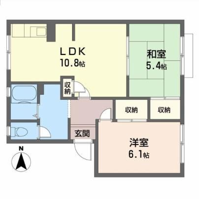 築年月 1991年2月  間取り 2LDK( LDK10.8畳/洋室6.1畳/和室5.4畳 ) 専有面積 50.7m2