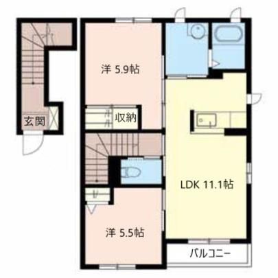 築年月 2010年4月  間取り 2LDK( 洋室5.5畳/洋室5.9畳/LDK11.1畳 ) 専有面積 57.1m2
